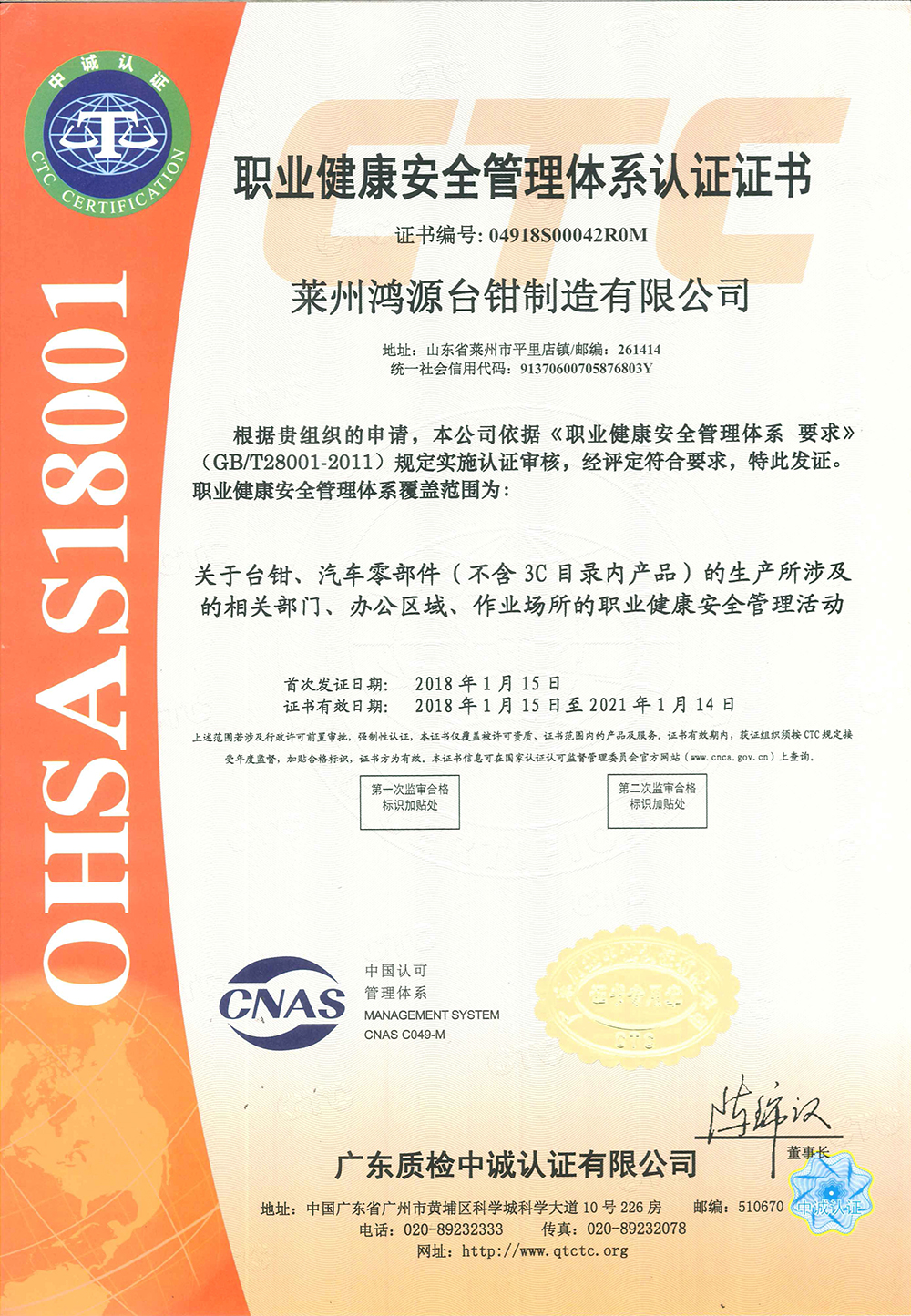 行業(yè)冠軍 萊州鴻源 --萊州鴻源臺鉗制造有限公司 萊州鴻源臺鉗制造有限公司坐落于美麗的山東半島萊州灣畔,地處山東半島藍色經(jīng)濟區(qū)、黃河三角洲高效生態(tài)區(qū)、膠東半島高端產(chǎn)業(yè)聚集區(qū)。地理位置優(yōu)越,交通便捷,已融入青島、煙臺、濰坊一小時經(jīng)濟圈。公司成立于1998年,由原萊州市臺鉗廠改制形成。占地面積10萬平方米,現(xiàn)有職工500人,其中工程技術人員90名。懷揣著振興民族工業(yè)的夢想,開拓創(chuàng)新,奮勇爭先,已發(fā)展成為中國臺鉗生產(chǎn)行業(yè)的領軍...